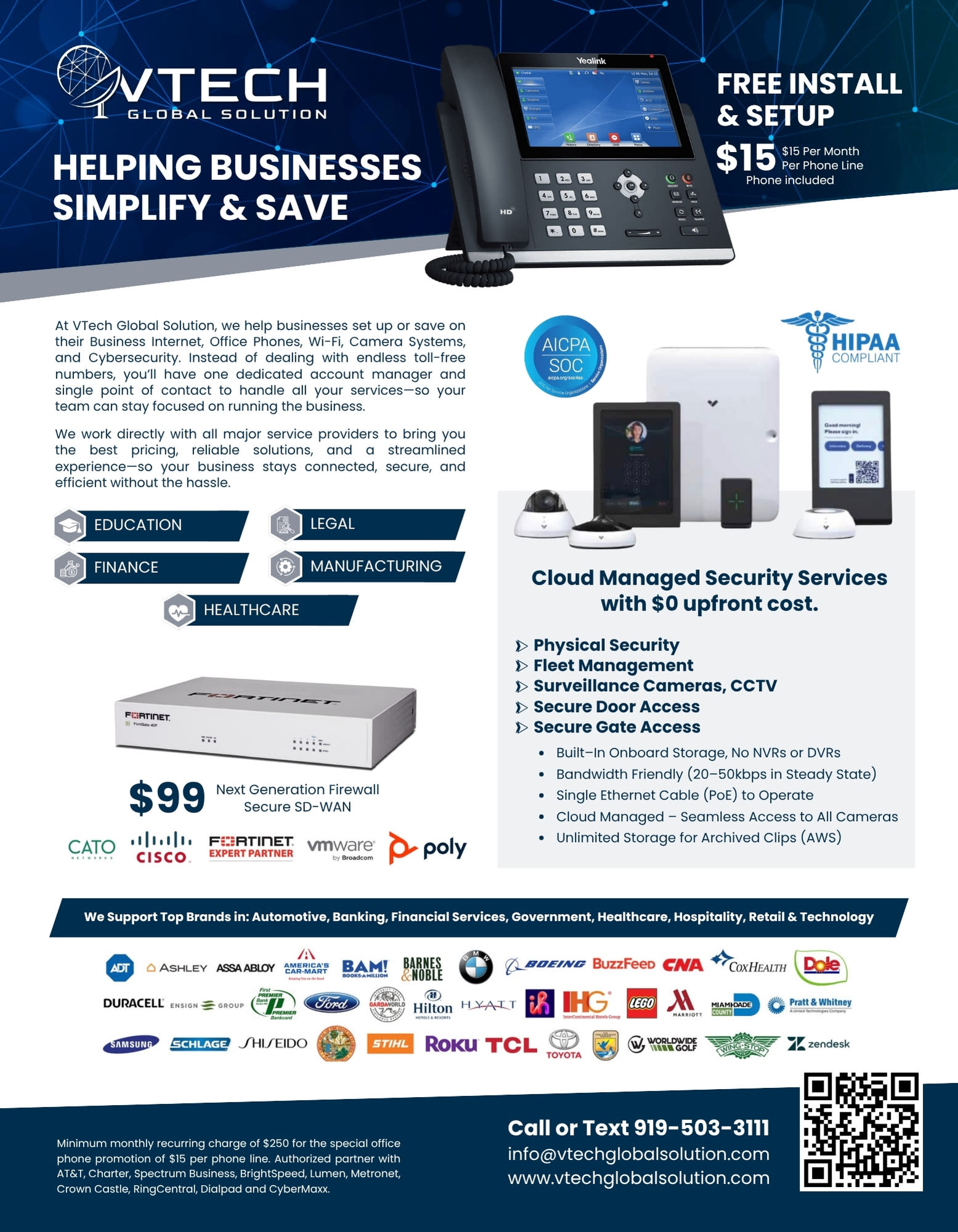 With over 15 years of business-to-business experience, VTech Global Solution is dedicated to helping companies succeed through reliable internet, advanced phone systems, and world-class cybersecurity solutions.